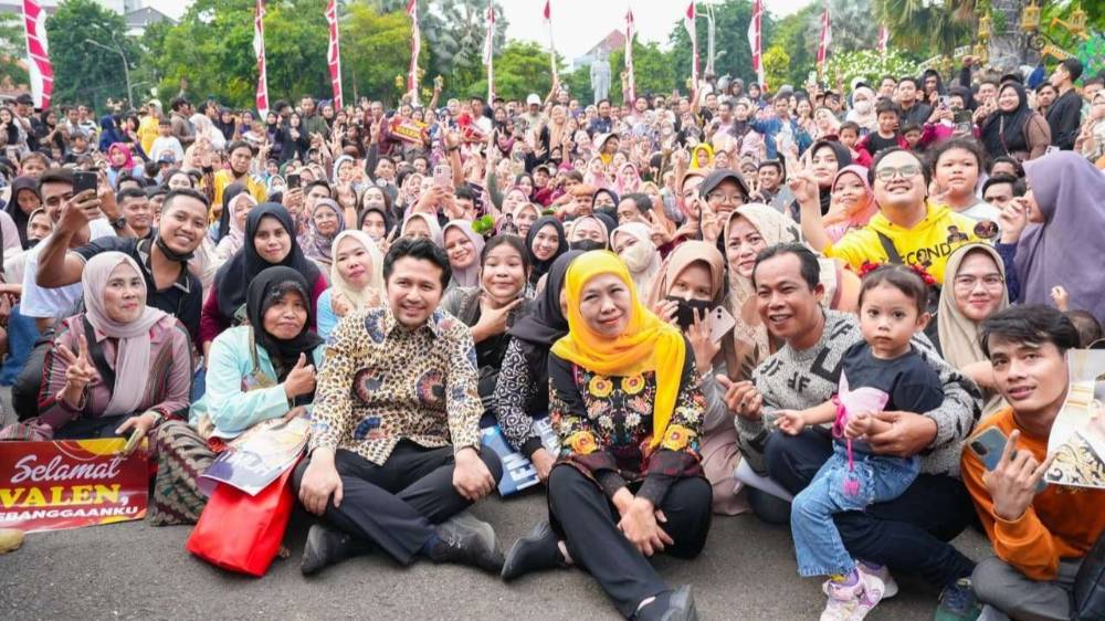 Gubernur Jawa Timur, Khofifah Indar Parawansa bersama Difi Ahmad Johansyah, Kepala Perwakilan Bank Indonesia saat jumpa pers dengan media di Surabaya usai Opening Ceremony Fesyar 2020 Senin (5/10/2020)