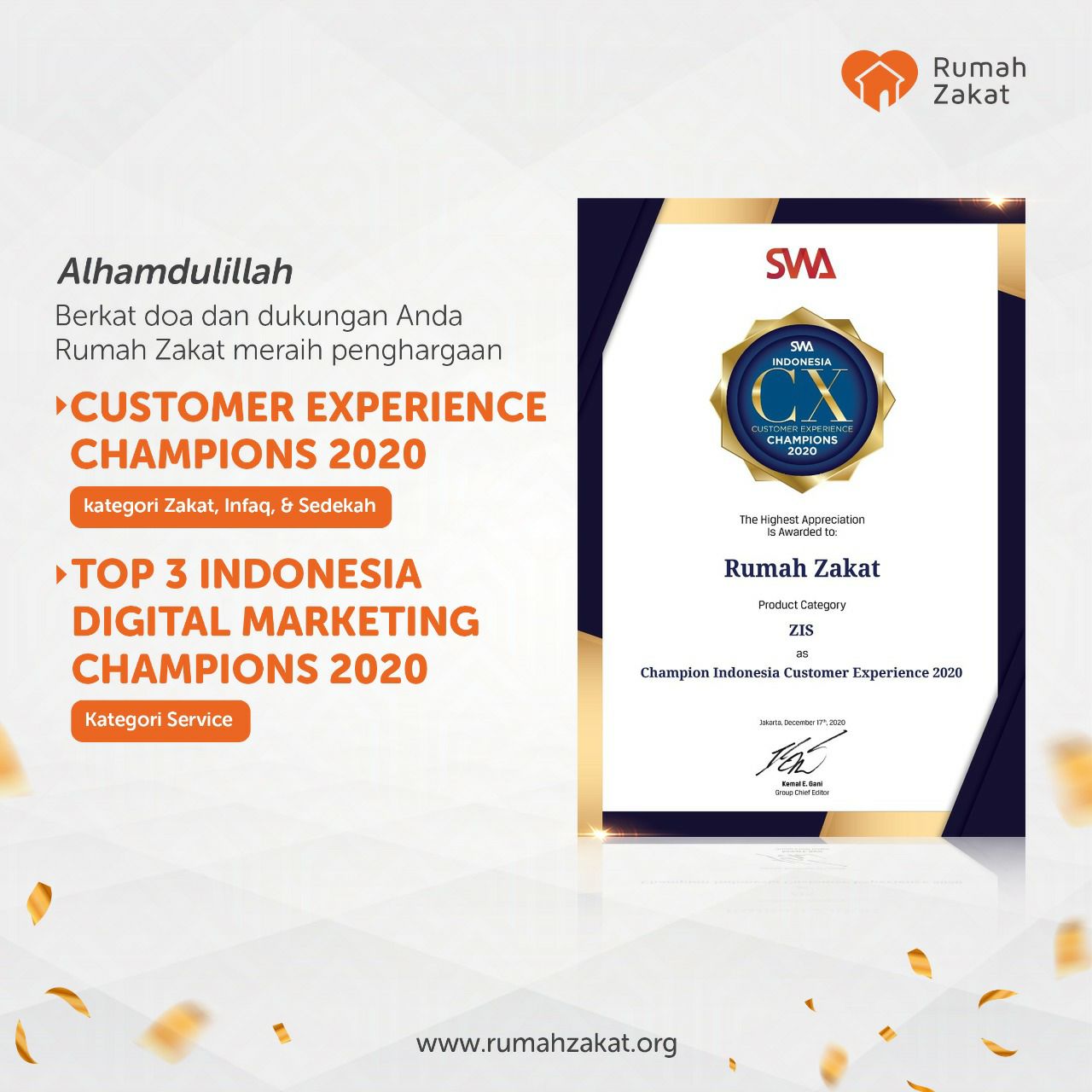 KILASJATIM.COM, Surabaya – Rumah Zakat kembali mendapatkan penghargaan, kali ini Customer Experience Champion 2020 untuk Kategori ZIS dan Top 3 Digital Marketing Champion yang digelar dalam acara Indonesia Customer Experience Champions 2020 and Digital Marketing Champion 2020 oleh majalah SWA dan Business Digest.