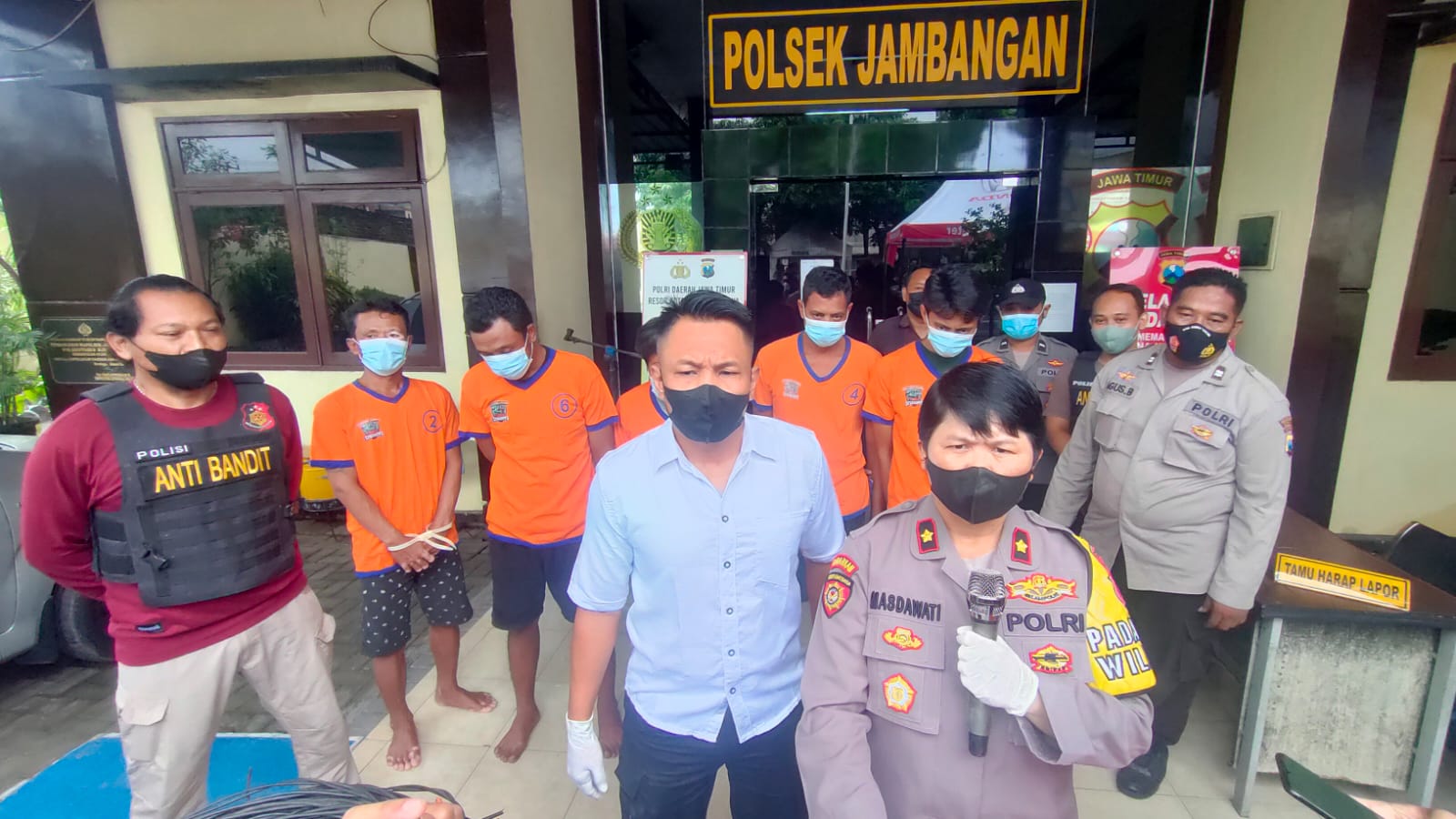 KILASJATIM.COM, SURABAYA: Polsek Jambangan mengamankan lima pelaku pencurian kabel milik Perusahaan Jawatan Kereta Api (PJKA) Sepanjang.