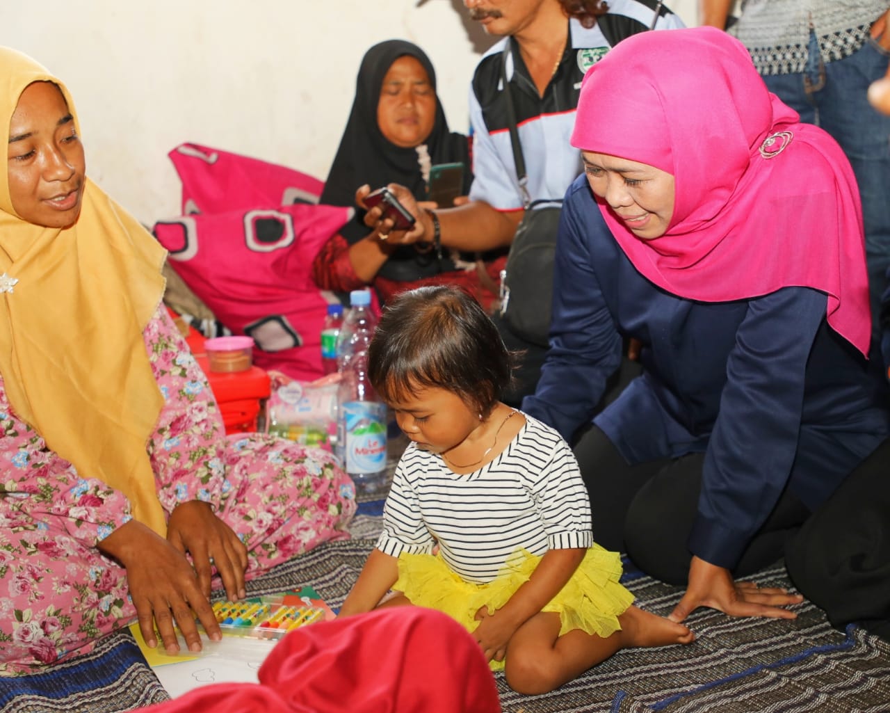 Khofifah juga berinteraksi dengan para warga yang mengungsi di tempat relokasi. Termasuk mengecek keberadaan dapur umum yang menyediakan makanan bagi warga.