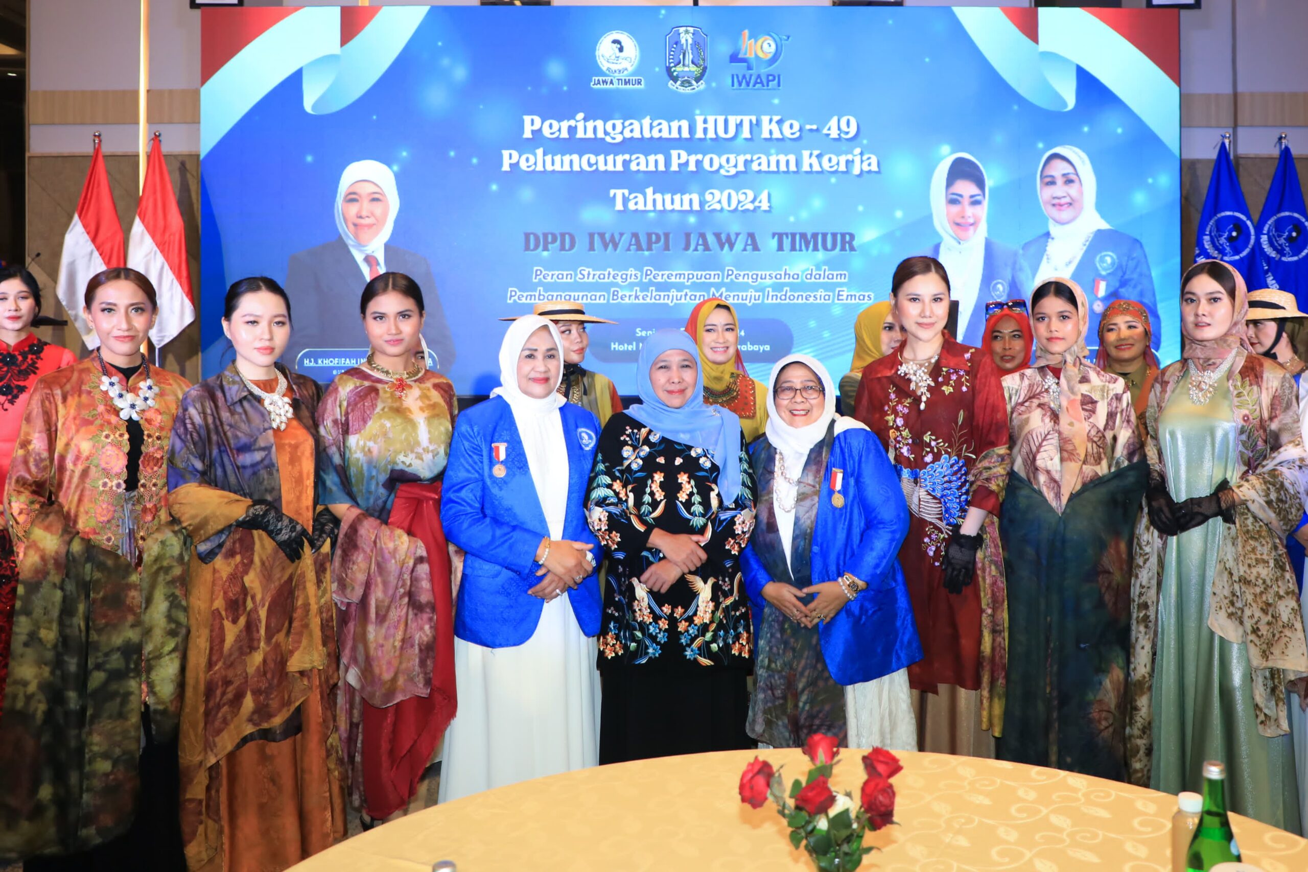 “Ini semua adalah ekspresi dari desainer top di dalam DPD IWAPI Jatim. Kita bisa melihat karya dari Bojonegoro yang bernuansa imlek, juga dari Jember, ada juga batik yang dipadukan dengan bordir. Ini ide inovatif yang inklusif, dan menunjukkan wujud dari kolaborasi kita,” pujinya.