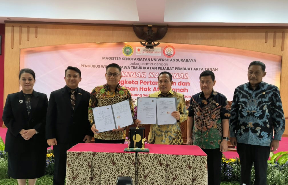 KILASJATIM.COM, SURABAYA – Wujudkan wadah partisipasi mencari solusi soal sengketa pertanahan serta sengketa jaminan atas tanah, Prodi Magister Kenotariatan Universitas Surabaya (Ubaya) bekerja sama dengan Pengurus Wilayah Jawa Timur Ikatan Pembuat Akta Tanah membahasnya dalam sebuah seminar nasional (semnas).