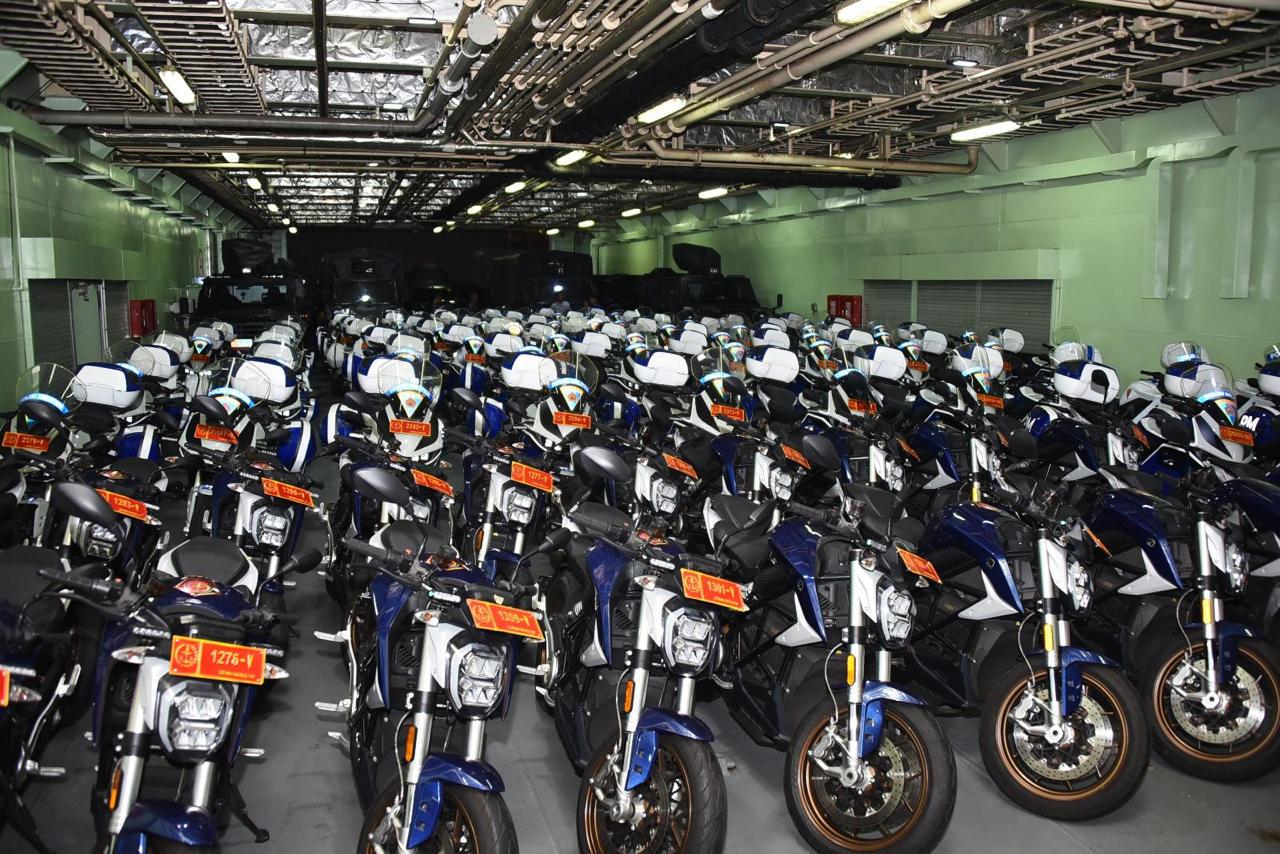 Puluhan Rantis dan motor kawal tersebut akan dibawa menggunakan empat KRI milik TNI AL, yakni KRI Banjarmasin-592, KRI Makassar-590, KRI Banda Aceh-593, dan KRI Teluk Bintuni-520 menuju Pulau Dewata. Seluruh Rantis ini diperkirakan akan tiba di pelabuhan Tanjung Benoa Bali pada 14 Mei 2024.