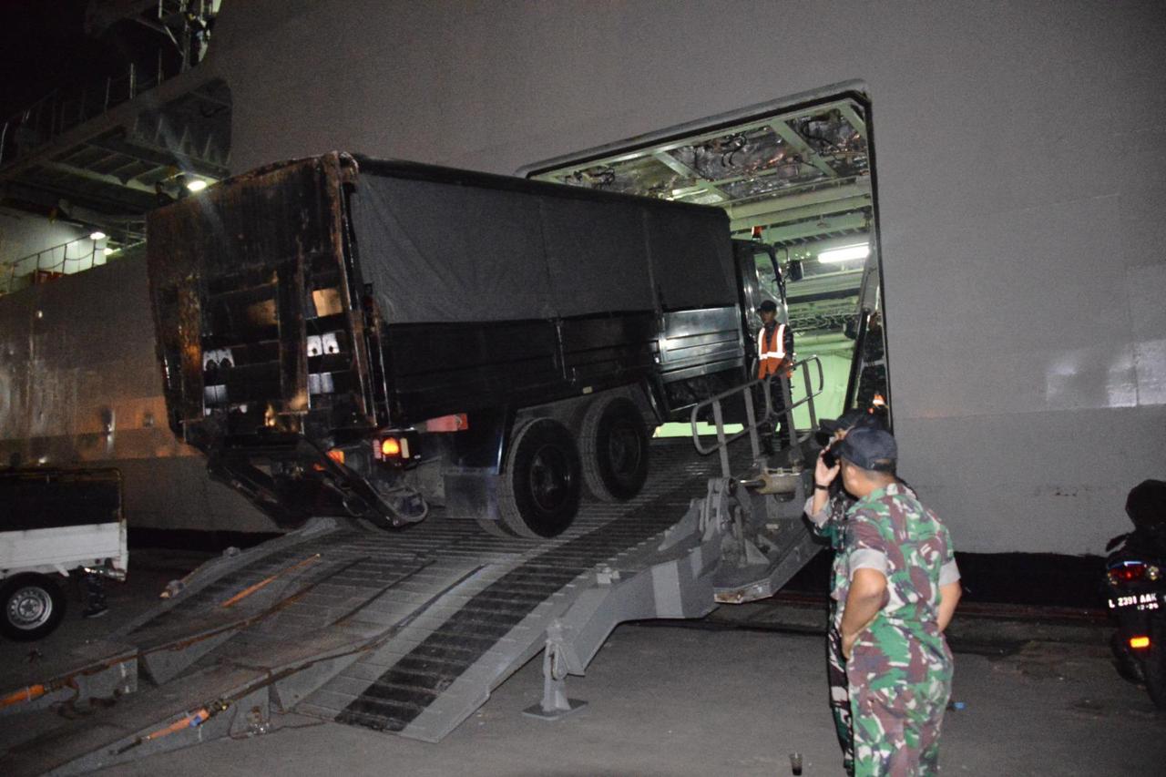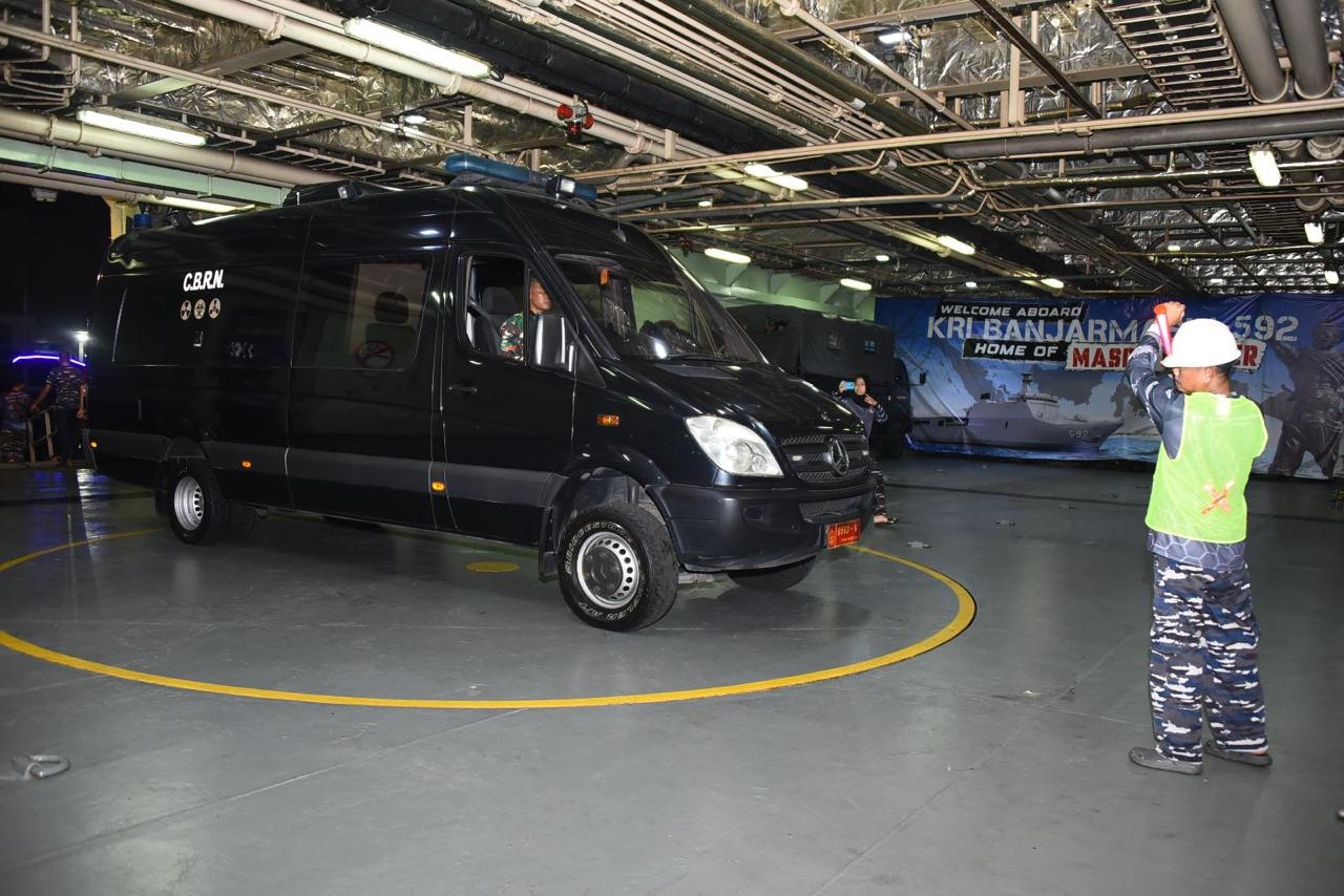 Sementara jenis Rantis yang mulai diberangkatkan menggunakan keempat KRI di antaranya meliputi Ransus CBRNE Sprinter 516, Ransus Lidik Kizi Nubika, Ran Elf (satwa), Ranpur Anoa, Ransus Jihandak Ivader+ Bom Trailer, Motor listrik (POM), Motor listrik (Matan), Mobil listrik (POM), dan Sea Rider + truk penarik.