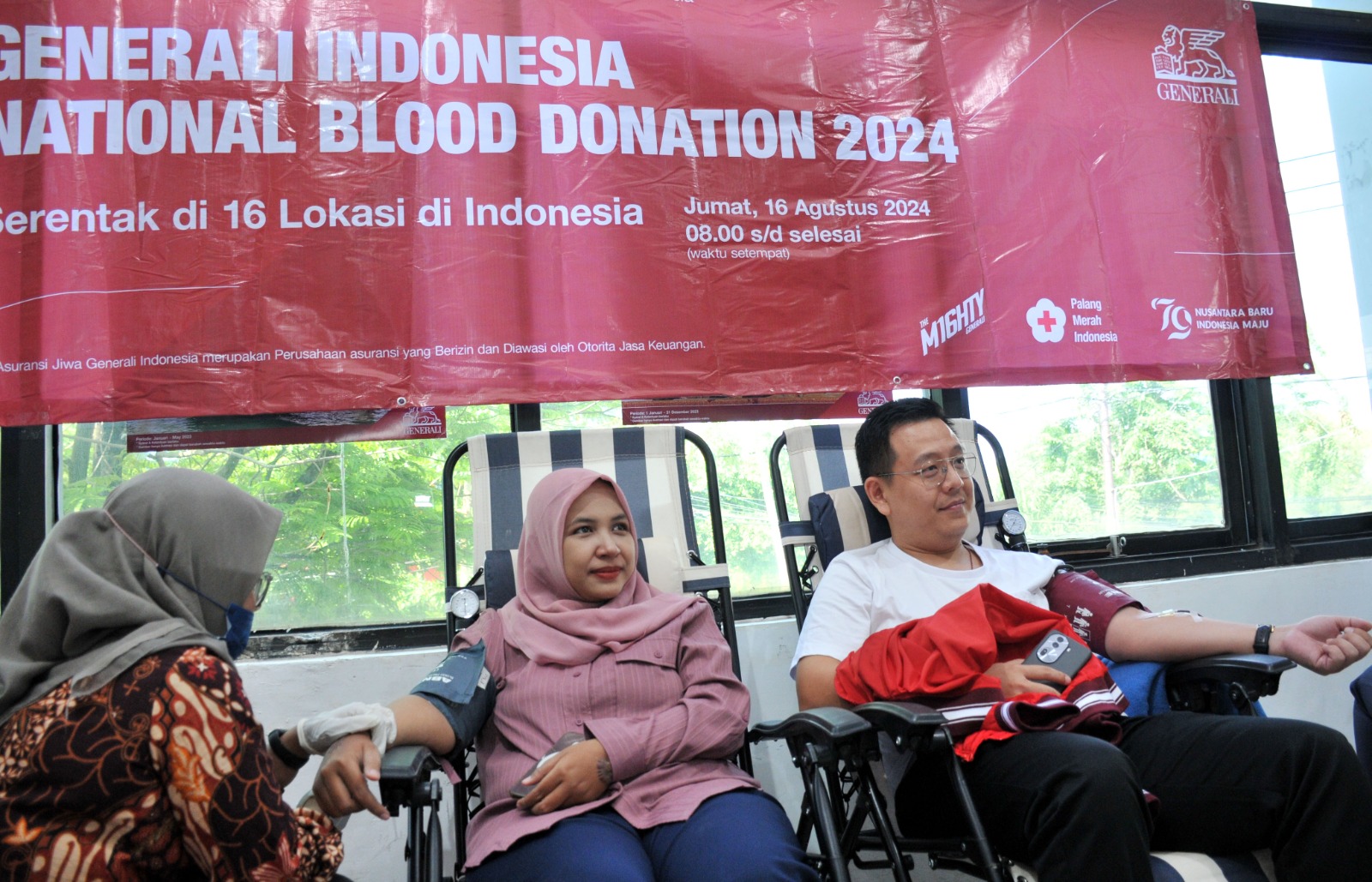 KILASJATIM. COM, Surabaya – PT Asuransi Jiwa Generali Indonesia (Generali Indonesia) gelar donor darah serempak di 16 titik di belasan kota di Indonesia, Jum’at (16/8/2024), diantaranya Jakarta, Tangerang, Yogyakarta, Bandung, Semarang, Surabaya, Pontianak, Palangkaraya, Jayapura, Pekanbaru, Palembang, Medan, Malang, dan Cirebon. Bekerja sama dengan Palang Merah Indonesia (PMI), kegiatan donor darah ini merupakan bagian dari rangkaian ulang tahun ke-16 Generali Indonesia untuk saling membantu sesama bagi yang membutuhkan transfusi dan upaya perusahaan untuk mengajak masyarakat lebih sehat. Inisiatif ini melibatkan hampir 2.000 pendonor dan relawan.