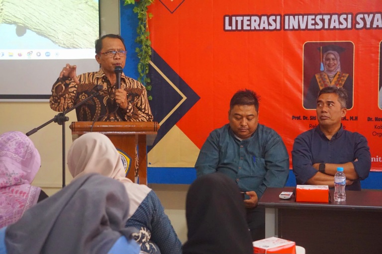 MILASJATIM.COM, SURABAYA – Kuliah tamu bertema: Literasi Investasi Syariah untuk Mewujudkan Generasi Z yang Produktif, digelar Fakultas Ekonomi dan Bisnis (FEB) dan Fakultas Ilmu Administrasi (FIA) Universitas Dr. Soetomo (Unitomo) Surabaya, bersama Himpunan Mahasiswa Akuntansi, BEM FEB, BEM FIA, dan Dewan Legislatif Mahasiswa FIA, dan berkolaborasi dengan platform investasi syariah URUN RI dan Said Aqil Siroj Center (SAS Center).
