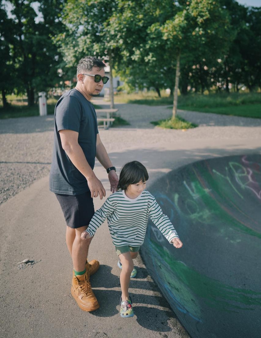 Bjorka dan Mars, duo seru anak dari Ringgo Agus Rahman dan Sabai Dieter, tampil penuh energi saat berlibur dan berpetualang seru. Dalam balutan KIDS AIRism Katun T-Shirt Grafis Kerah Bulat Grafis Garis dan KIDS Celana Pendek Rileks Twill, Mars tampil menggemaskan sembari bergerak lincah bermain di perosotan.