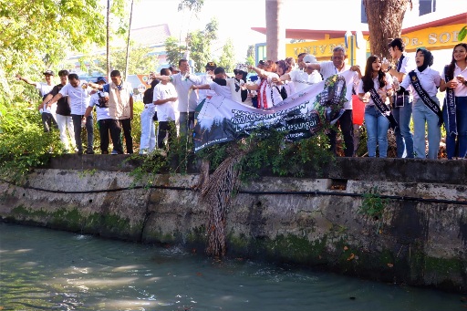 KILASJATIM.COM, SURABAYA – Ratusan civitas akademika Universitas Dr. Soetomo (Unitomo) bersama jajaran Kecamatan Sukolilo, Kelurahan Menur Pumpungan, dan Dinas Lingkungan Hidup Surabaya menggelar aksi bersih-bersih sungai di depan Kampus Semolowaru, Minggu (20/7/2025). Mereka juga menuangkan Eco Enzym hasil produksi mahasiswa Unitomo, selama tiga bulan di bawah bimbingan Dr. Vieta Cornelis, Ketua Pusat Studi Pancasila Konstitusi dan Peradaban Indonesia (Puspakopi).