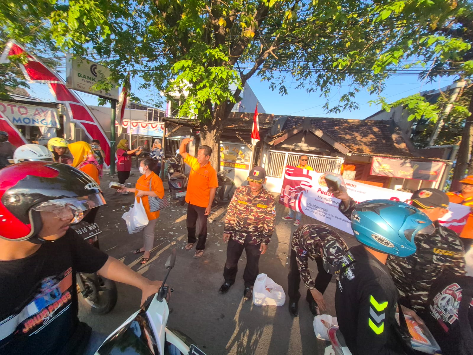 Merayakan Kemerdekaan RI, pengurus bersama anggota PEDALINDO dan afiliasi lainnya turun ke jalan pada Sabtu (23/8/2025) membagikan nasi kotak, sebuah aksi gotong royong yang menunjukkan kepedulian sosial mereka. (ist/dok)