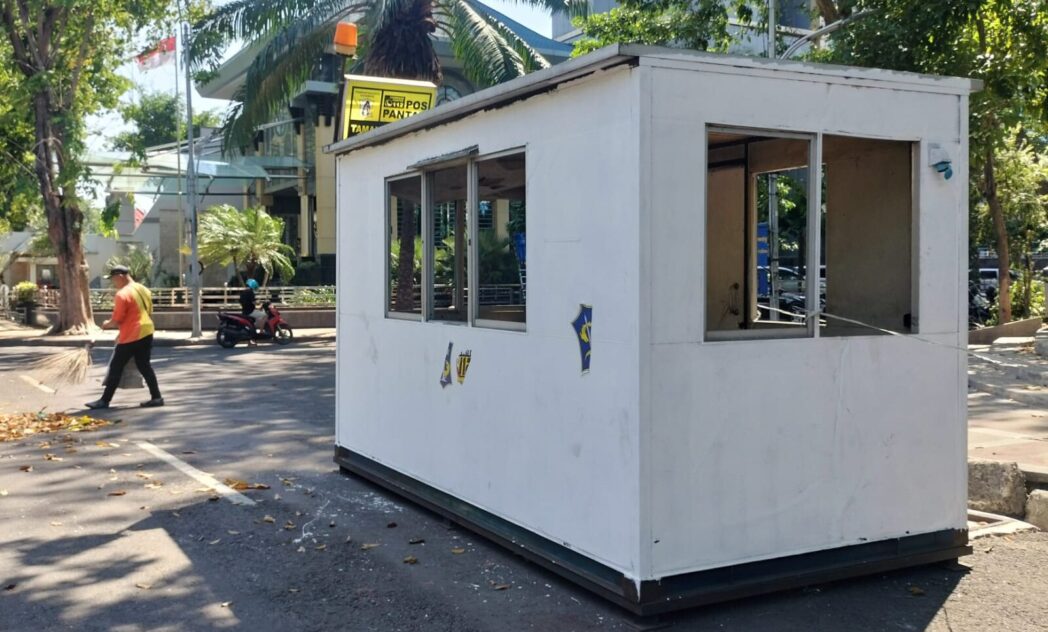 Salahsatu pos pantau di Taman Bungkul yang sempat dibakar dan sudah dilakukan pembersihan.