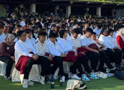 Seluruh mahasiswa baru UC bersama-sama menyanyikan lagu “Ibu Pertiwi” sambil menyalakan flashlight dari ponsel masing-masing. Momen itu menghadirkan suasana haru dan kekhidmatan, sebagai ungkapan cinta tanah air sekaligus tanda kepedulian terhadap kondisi Indonesia yang tengah menghadapi tantangan.