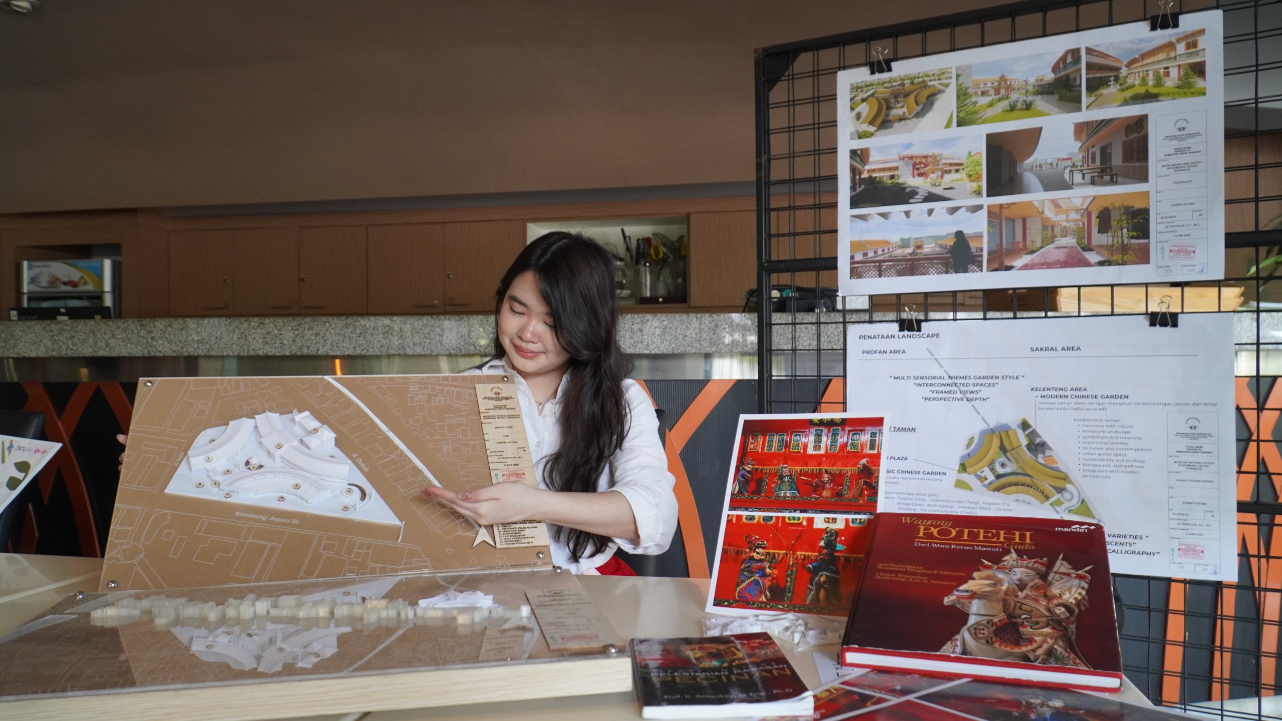 Audrey Ryuka Puspita Darmosugondo, calon wisudawan Architecture membuat desain Museum Wayang Potehi. (Foto: Humas PCU/kilasjatim.com)