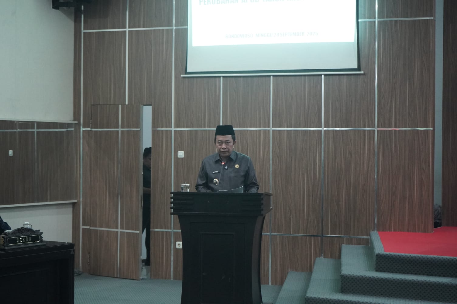 “Saya atas nama Pemerintah Kabupaten Bondowoso menyampaikan terima kasih kepada segenap pimpinan dan anggota DPRD yang telah bekerja keras memberikan masukan dalam pembahasan perubahan APBD tahun anggaran 2025,” ujarnya.
