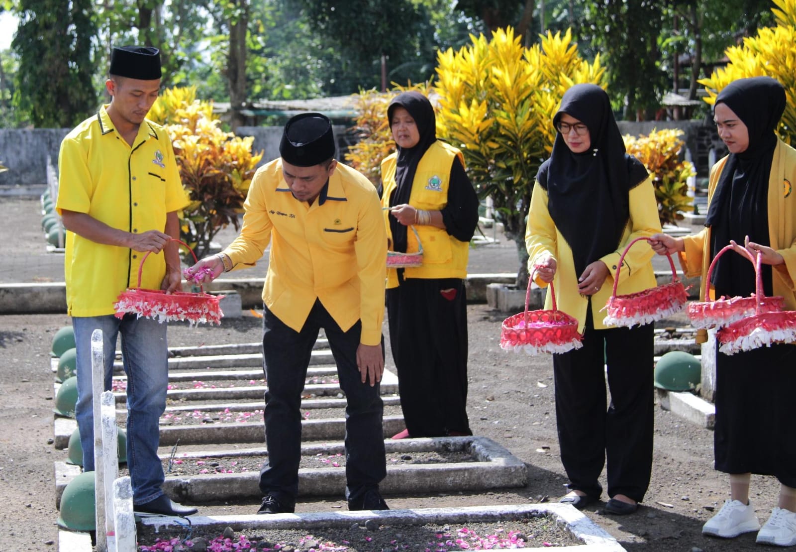Usai apel, para kader menyebar ke seluruh penjuru makam, menabur bunga di setiap pusara dengan penuh hormat. Beberapa terlihat meneteskan air mata saat membungkuk di hadapan nisan para pahlawan.