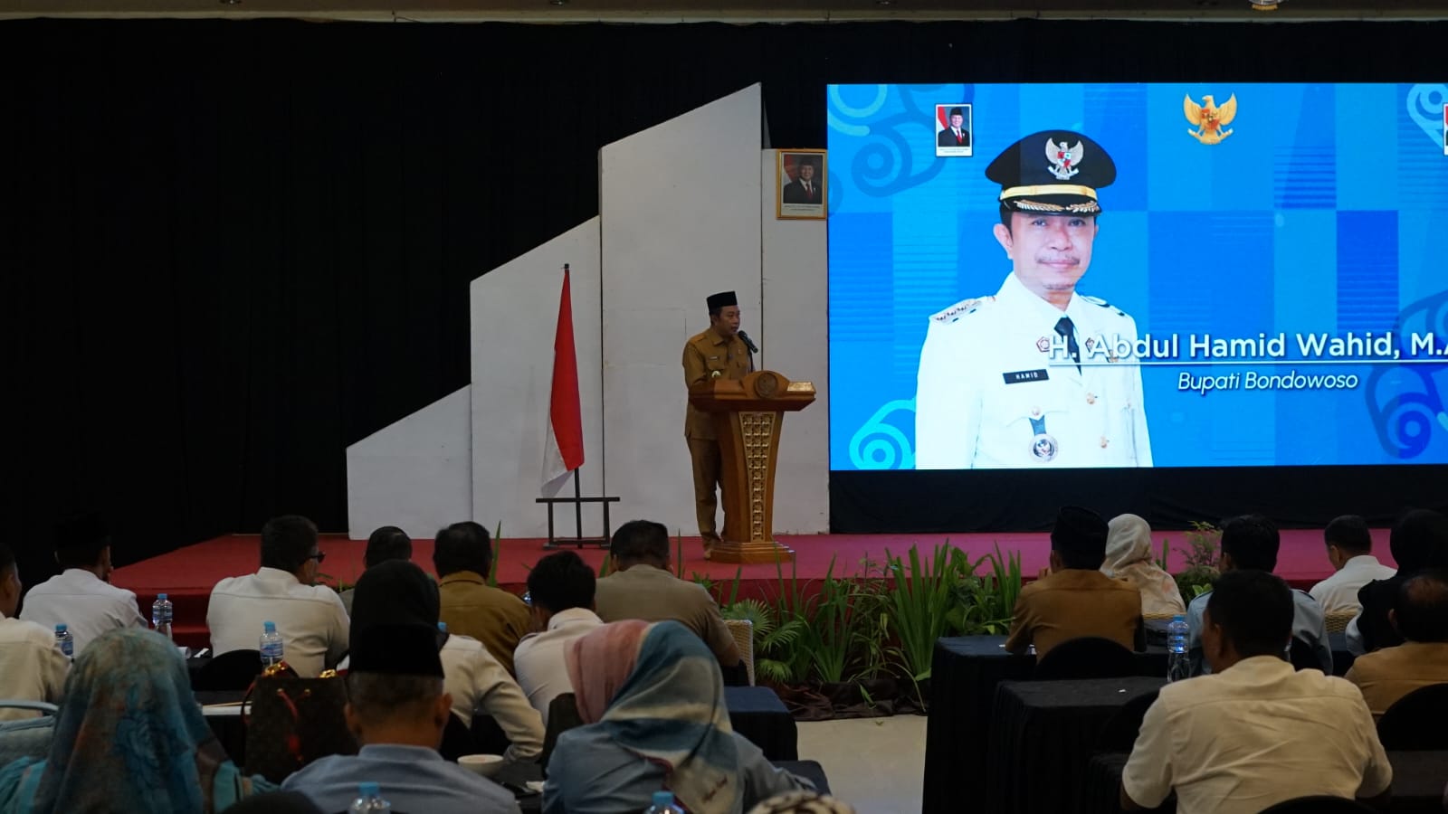 Dalam sambutannya, Bupati Abdul Hamid Wahid menyampaikan rasa syukur serta penghargaan kepada Kejaksaan Negeri Bondowoso, Kementerian Agama Bondowoso, dan FKUB yang telah berkolaborasi dengan Pemerintah Daerah dalam menyelenggarakan kegiatan ini. Ia juga memberikan apresiasi kepada siswa SMA, SMK, dan MA—baik negeri maupun swasta—yang telah berkomitmen menjadi Kader Moderasi Beragama.