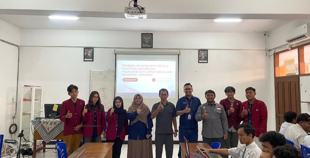 KILASJATIM.COM, Surabaya – Kemajuan teknologi informasi menuntut generasi muda untuk memiliki kemampuan memahami, mengolah, dan membaca data sejak dini. Berangkat dari kebutuhan tersebut, kegiatan Sains Data Untuk Masyarakat (SDUM) kembali dilaksanakan oleh mahasiswa Program Studi Sains Data Telkom University Surabaya, kali ini di SMK Antartika 1 Sidoarjo, Kamis (18/12/2025).