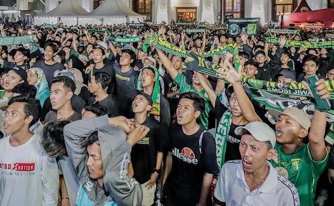 Suporter Persebaya saat nonton bareng. (Foto: Istimewa/bola.net)